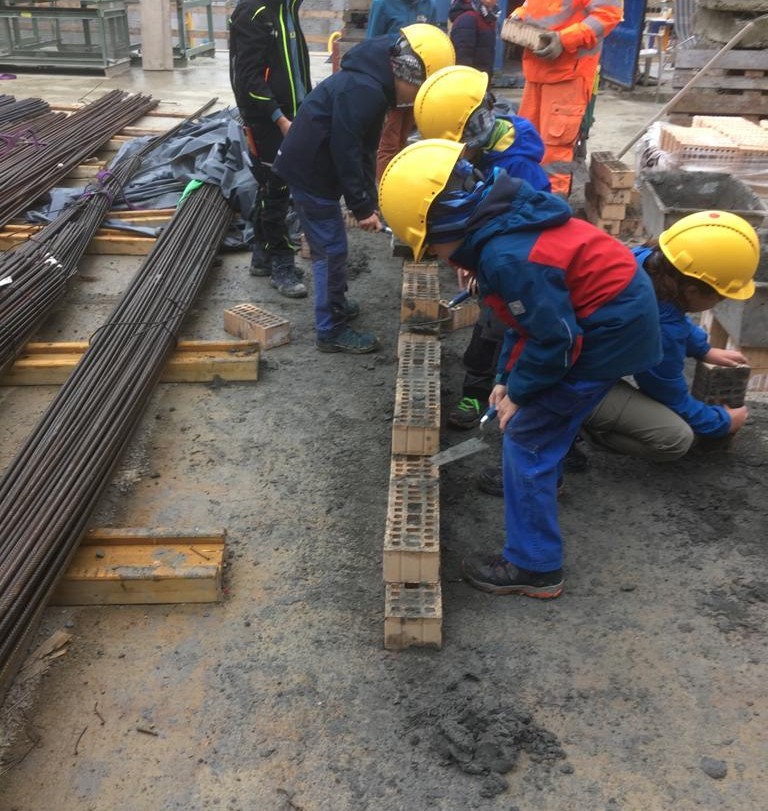 Wir besuchen gemeinsam eine Baustelle der Firma Stutz. Wie entsteht ein Haus oder eine gerade Mauer?